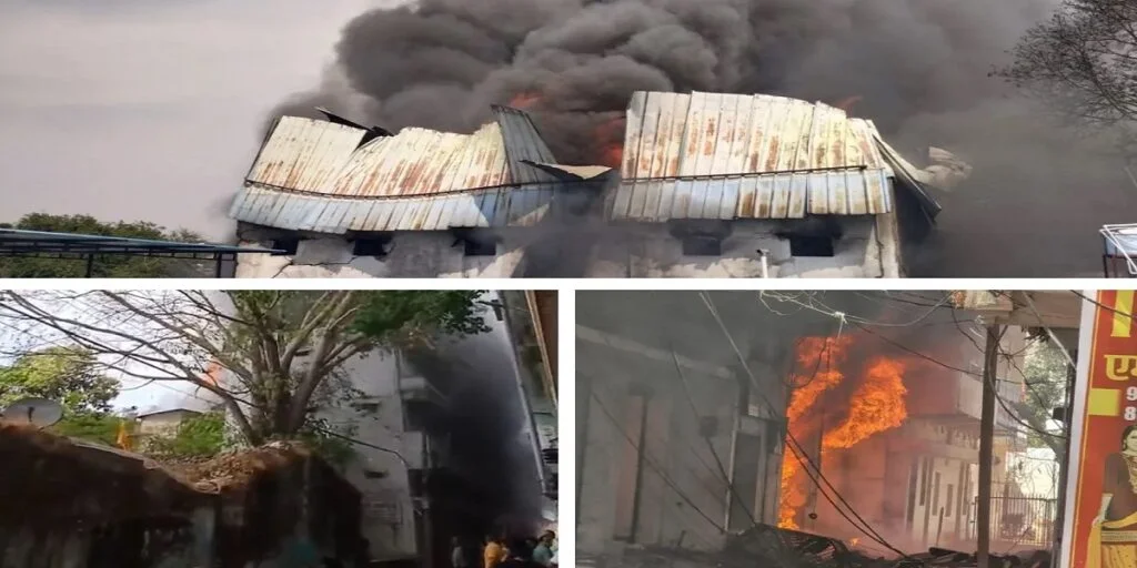 1 घंटे के अंदर आग ने 2 मंजिला बिल्डिंग को चपेट में ले लिया। घटना कोतवाली थाना क्षेत्र की है। प्लास्टिक सामान जलने के बाद अब आग से पटाखे जल रहे। धमाकों की आवाज से इलाका गूंज उठा है।