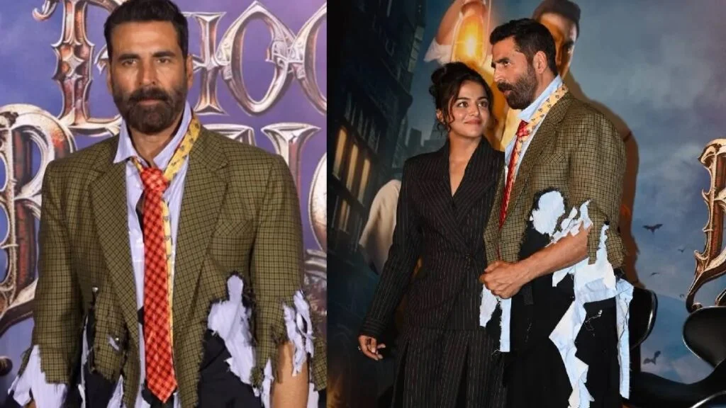 मुंबई में 6 अप्रैल को अक्षय कुमार की बहुप्रतीक्षित फिल्म ‘भूत बंगला’ का ट्रेलर एक भव्य समारोह में लॉन्च किया गया। इस कार्यक्रम में अक्षय के साथ तब्बू, वामिका गब्बी, राजपाल यादव और परेश रावल जैसे दिग्गज सितारे शामिल हुए। हालांकि फिल्म के ट्रेलर से कहीं ज्यादा चर्चा अक्षय कुमार के अजीबोगरीब पहनावे की हो रही है। उनका अतरंगी आउटफिट सोशल मीडिया पर छाया हुआ है। इस कार्यक्रम के वीडियो सोशल मीडिया पर वायरल होने के बाद नेटिजन्स ने अक्षय के अतरंगी अवतार पर अपना रिएक्शन साझा किया है।
