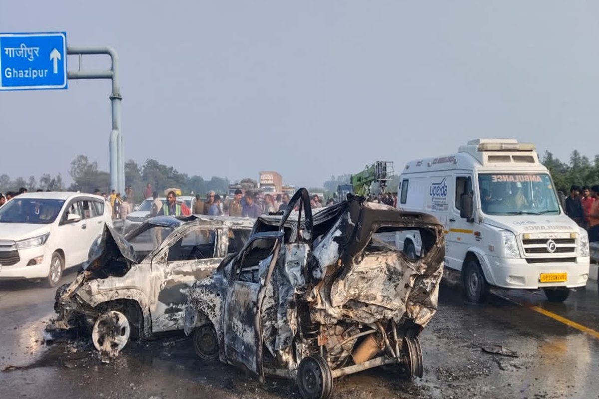 Road Accident: उत्तर प्रदेश के बाराबंकी जिले में बुधवार को सुबह उस वक्त हड़कंप मच गया, जब Purvanchal Expressway पर एक भीषण सड़क हादसे में कम-से-कम पांच लोगों की मौत हो गई और कई अन्य गंभीर रूप से घायल हो गए। दुर्घटना तब हुई, जब तेज रफ्तार में आ रही एक Maruti Brezza कार अचानक खड़ी Maruti WagonR कार से टकरा गई। टक्कर के बाद दोनों वाहन आग की भयंकर लपटों में घिर गए।