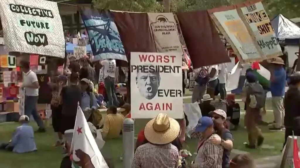 अमेरिका के न्यूयॉर्क जैसे बड़े शहरों से लेकर ड्रिग्स जैसे छोटे कस्बों तक, लगभग 3,100 से अधिक कार्यक्रम दर्ज किए गए। अधिकांश सभाएं शांतिपूर्ण रहीं, लेकिन लॉस एंजिल्स में झड़पें हुईं, जहां कुछ प्रदर्शनकारियों द्वारा संघीय हिरासत केंद्र के पास वस्तुएं फेंकने के बाद पुलिस ने आंसू गैस का इस्तेमाल किया। अधिकारियों ने बताया कि जब लोगों ने तितर-बितर होने से इंकार कर दिया तो गिरफ्तारियां की गईं। वाशिंगटन डीसी में, सैकड़ों लोग लिंकन मेमोरियल से नेशनल मॉल तक मार्च करते हुए गए, उनके हाथों में “ताज उतारो, मसखरा” लिखे बैनर थे और वे “कोई राजा नहीं” के नारे लगा रहे थे।